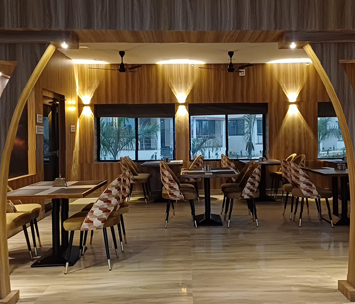 Chhau Palash is a fine dining restaurant that offers customizable Bengali and Indian cuisine thalis, available in both vegetarian and non-vegetarian options. Additionally, Chinese dishes can be prepared based on guest orders. On the top floor, there is a separate bar where you can enjoy your drink while taking in the stunning views of Baranti Lake beside the hill.